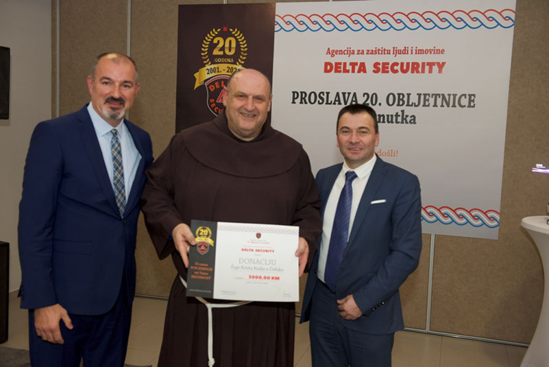 ”Ovu večer smo zamislili da upravo bude večer zahvale i večer radosti s prijateljima. Želimo zahvaliti našim djelatnicima koji su naša obitelj, ali i vama brojnim klijentima, od kojih su neki s nama od samoga početka. Naša tvrtka rasla je iz godine u godinu, ali uz taj rast u poslovnom dijelu nismo zaboravili ni našu odgovornost prema društvu, našoj zajednici. I to je put koji jedino može biti uspješan i dati radost i veliko zadovoljstvo u radu”, kazao je između ostaloga Barbarić. Tvrtka ”Delta Security” Čitluk, osim poslova na zaštiti ljudi i imovine u poslovnu politiku rada od samih početaka uvodi brigu i pomoć potrebitima, udrugama, institucijama, kako bi na taj način pokazala i da im doprinos društvu i zajednici uz posao, znači doista mnogo. Tijekom večeri Uprava tvrtke odlučila je darovati iznos od 3000 KM za Župni ured Čitluk. Dar je primio župnik fra Miro Šego, koji je zahvalio na daru i podsjetio kako će on biti iskorišten za potrebe koje se odnose na gradnju nove crkve u Čitluku.