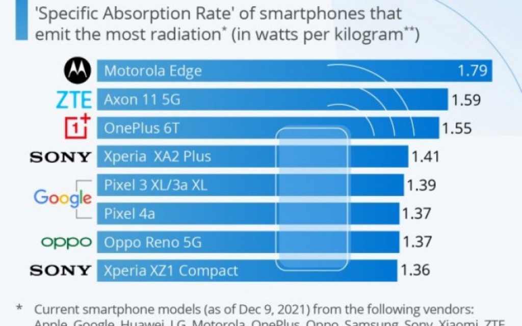 Trenutno telefon koji daleko najviše zrači je Motorola Edge.