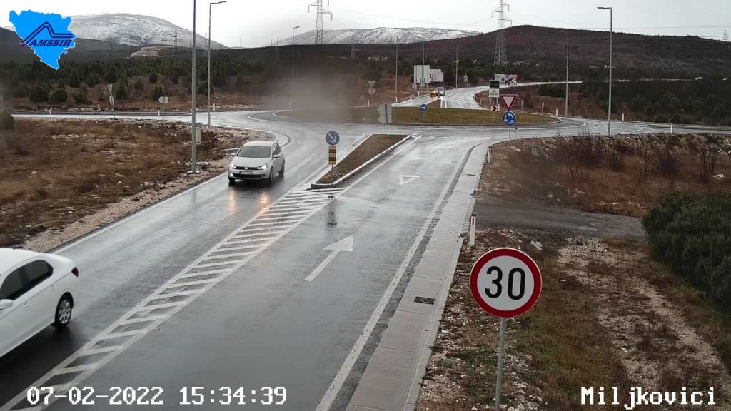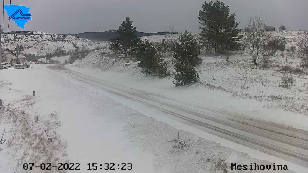 Zbog snijega otežano se prometuje na dionicama cesta u višim planinskih predjelima. Na ostalim dionicama prometuje se po mokrim ili djelomično vlažnim i skliskim kolnicima.