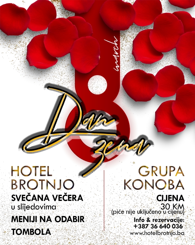 Drage dame, 8. ožujka u jedinstvenom ambijentu Hotela Brotnjo proslavite svoj dan!