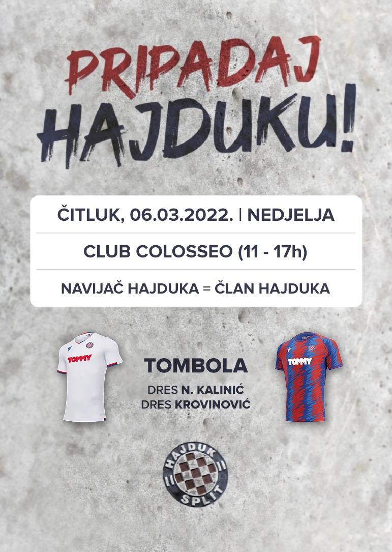 Posjetitelje očekuje bogata tombola, a nagrade su između ostaloga i dva originalna Hajdukova dresa.