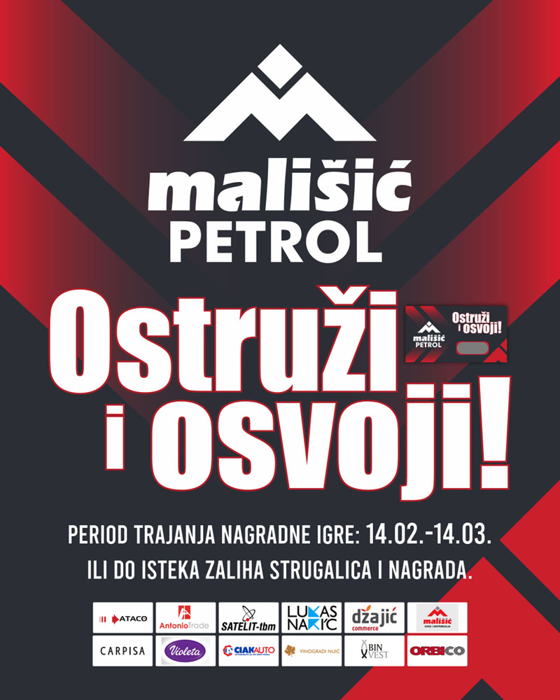 Kupovinom u visini od 20,00 KM i više na benzinskim crpkama Mališić Petrol Međugorje i Zvirovići stječete pravo sudjelovanja u nagradnom darivanju “OSTRUŽI I OSVOJI”.