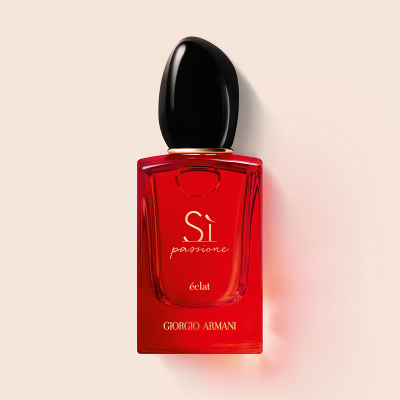 Parfemska voda Sì Passione Éclat utjelovljuje odvažno i moderno izdanje ženstvenosti, te prenosi živu snagu strasti utjelovljenu u crvenoj bočici, boji ljubavi.