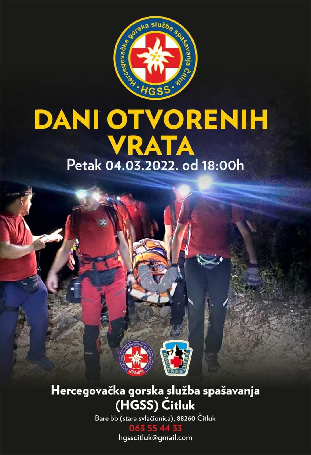 Hercegovačka gorska služba spašavanja Čitluk, u petak 4. ožujka 2022. godine organizira Dane otvorenih vrata.