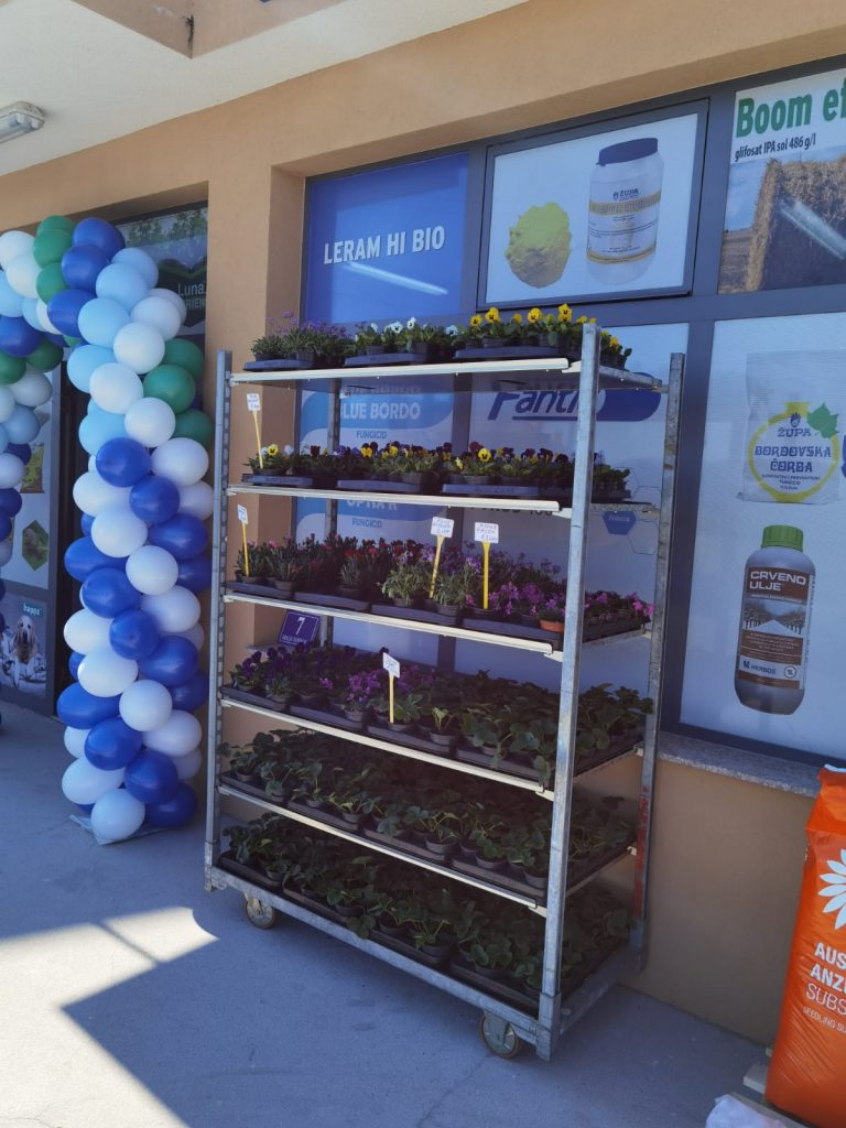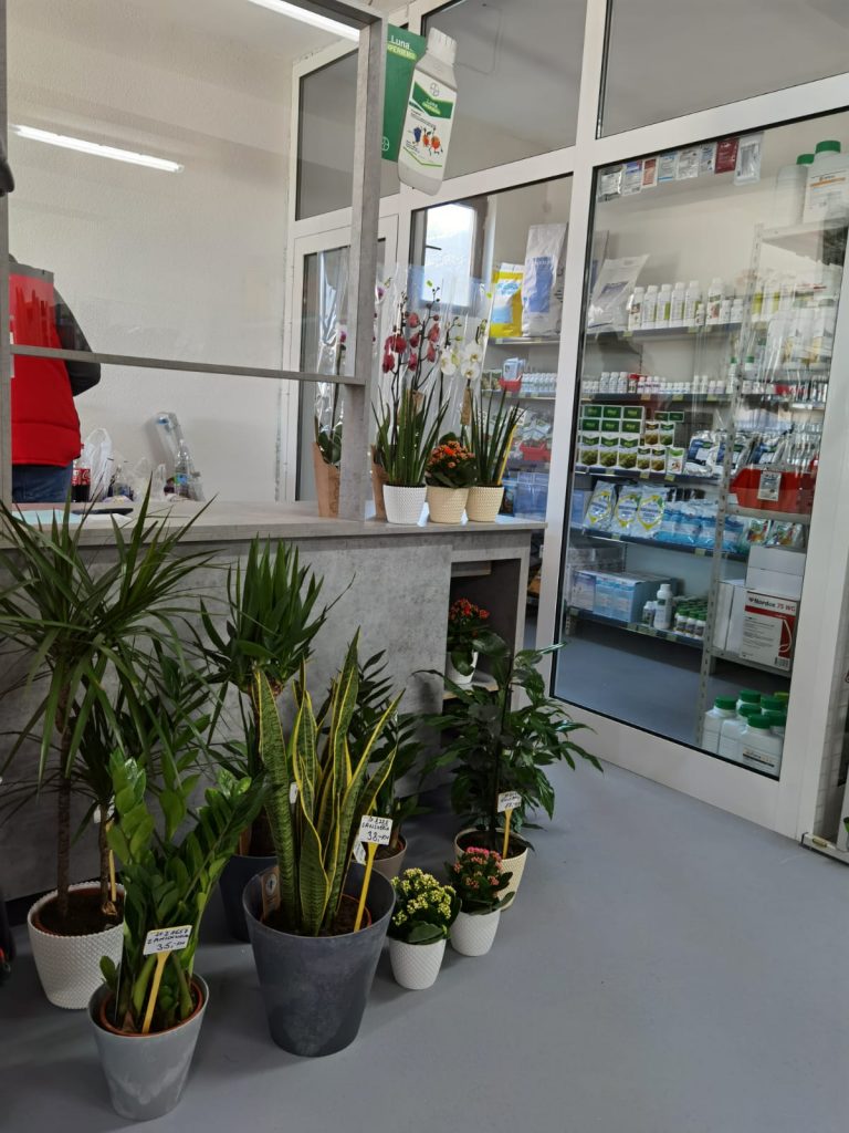 U ponudi se nalazi sadni materijal, sjemenska roba, mineralna gnojiva, zaštitna sredstva, staklena i PET ambalaža, kao i druge popratne robe za poljoprivrednu apoteku.