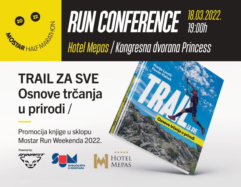 U sklopu ‘Mostar Run Weekenda 2022’ u petak 18.03. s početkom u 19.00h u kongresnoj dvorani hotela Mepas u Mostaru održati će se promocija knjige “Trail za sve – Osnove trčanja u prirodi” autora Franje Lovrića i Pavla Vlaheka.