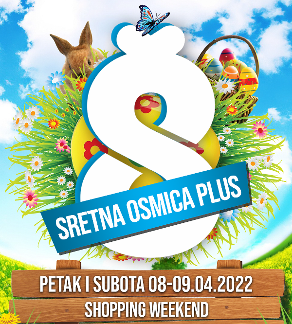Cijenjeni kupci, ovog petka i subote, 08.i 09.04. ne propustite posjetiti prodajni centar Mališić jer pred nama je vikend odličnih popusta koji vam donosi Sretna Osmica Plus.