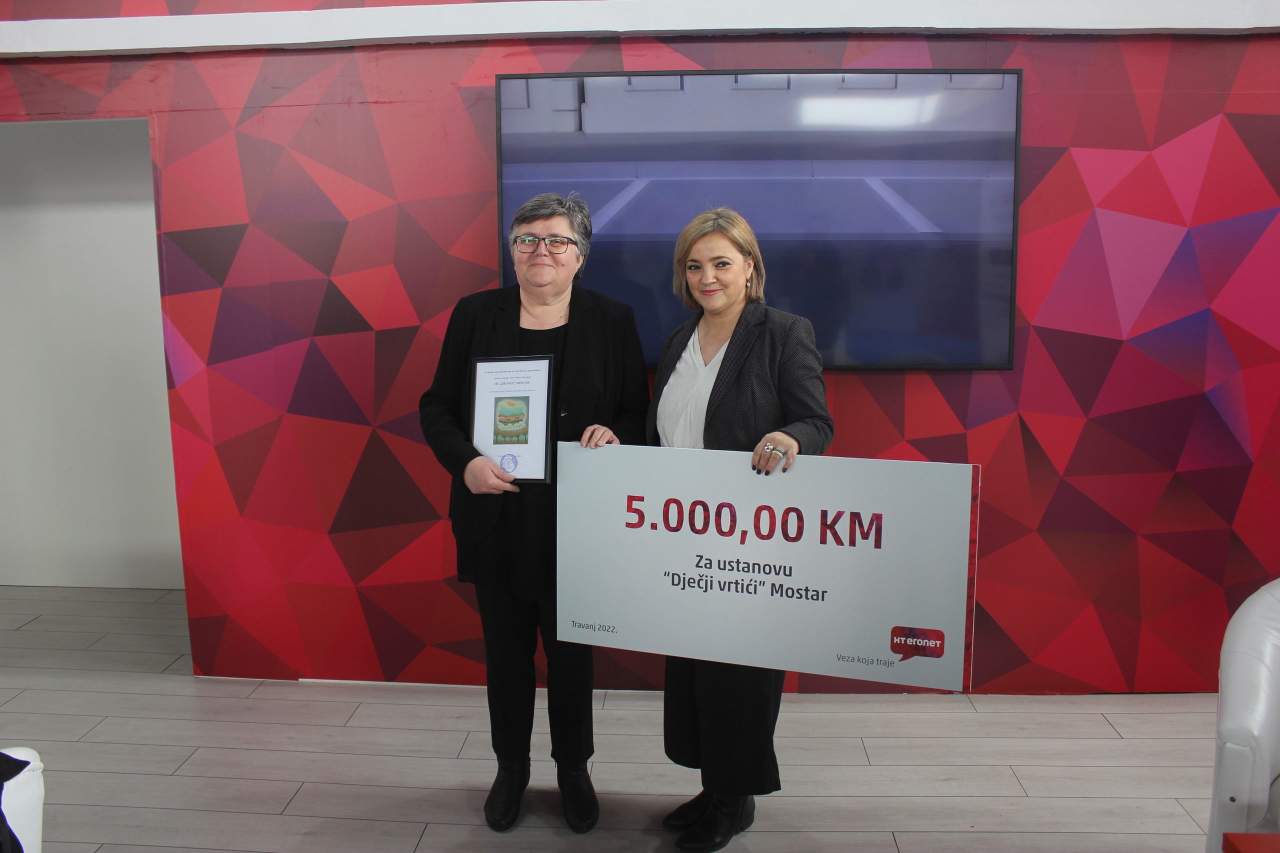 Voucher na iznos od 5.000 KM u svrhe uređenja vrtićkog dvorišta, gđi Kegelj uručila je Misijana Brkić Milinković, rukovoditeljica Korporativnih komunikacija HT Eroneta.