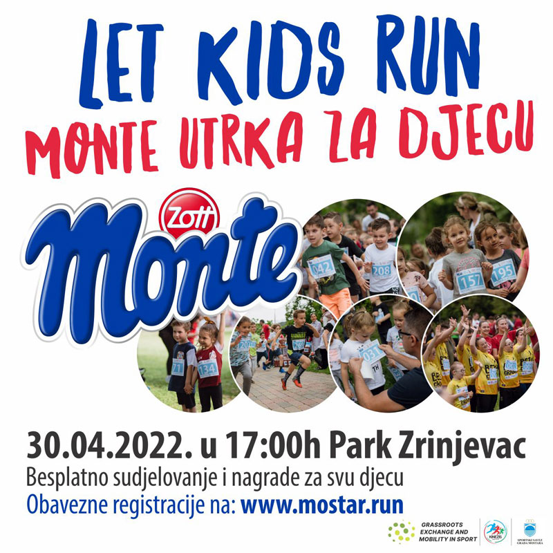 Udruga Zdrav život – KINEZIS u sklopu projekta “Pokretom protiv ovisnosti ” u subotu 30. 04. organizira “Monte utrku za djecu”. Utrka će se održati u parku “Zrinjevac” i biti će kružnog karaktera u dužini od 400m.
