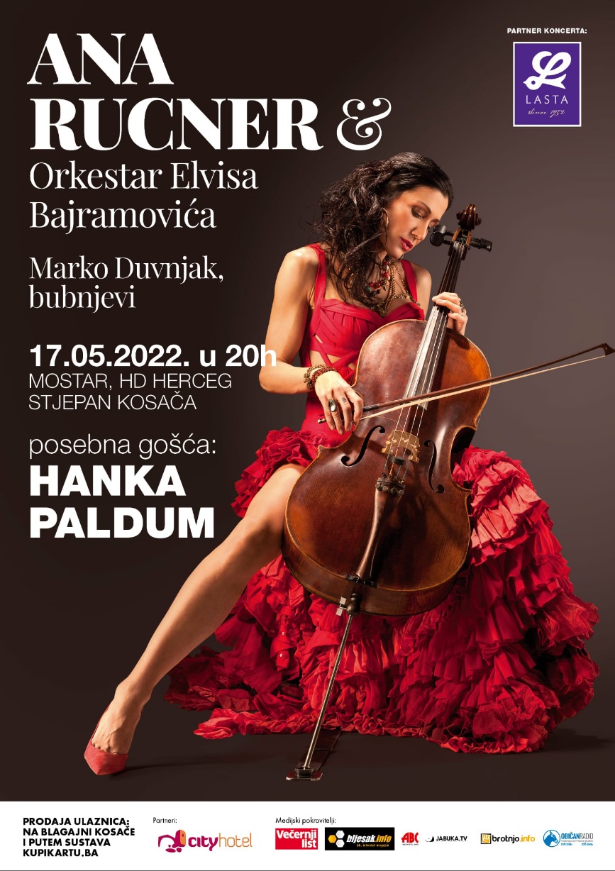 Publiku u Kosači očekuje pravi muzičko-scenski spektakl, a zanimljivo je naglasiti da se Ana Rucner na ovom koncertu predstavlja ne samo kao violončelistica, već i kao vokalistica koja će brojne pjesme i otpjevati.