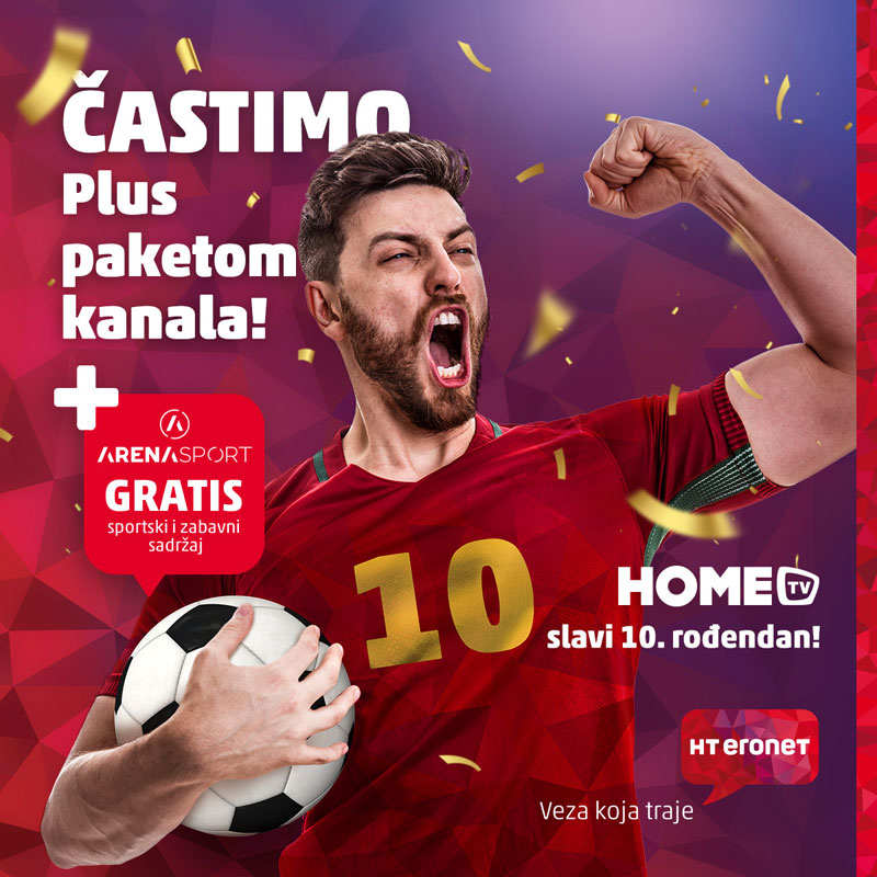 HOME.TV ove godine navršava 10 godina. Upravo zbog toga, korisnike očekuje prava slavljenička ponuda HT ERONET-a i to s poklonom! Ponuda se odnosi na sve privatne korisnike, koji u promotivnom razdoblju od 1.5. do 30.6. 2022. godine, potpišu Ugovor za jedan od TRIO paketa na 24 mjeseca. Njih naime očekuje besplatno korištenje PLUS paketa kanala, a ono traje u mjesecu aktivacije TRIO paketa i cijeli naredni mjesec.