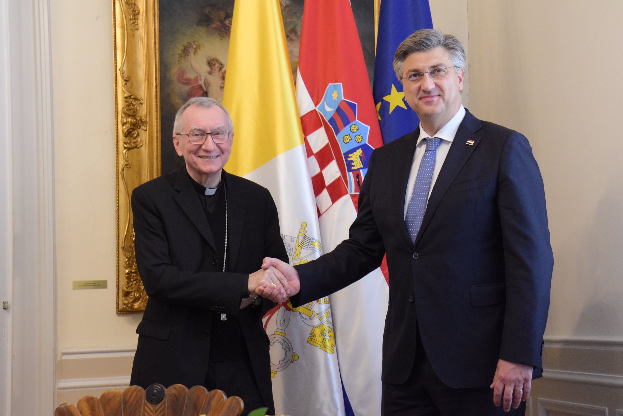 Nakon susreta s premijerom u Banskim dvorima, vatikanski državni tajnik sastat će se i s predsjednikom Zoranom Milanovićem.