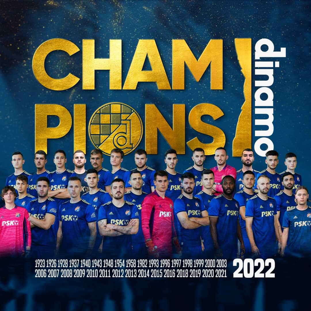 Nogometaši Dinama osigurali su 23. naslov prvaka Hrvatske nakon što su u susretu 35. kola Prve HNL na gostovanju pobijedili Šibenik sa 2-0 i kolo prije kraja pobjegli Hajduku na nedostižna četiri boda prednosti.