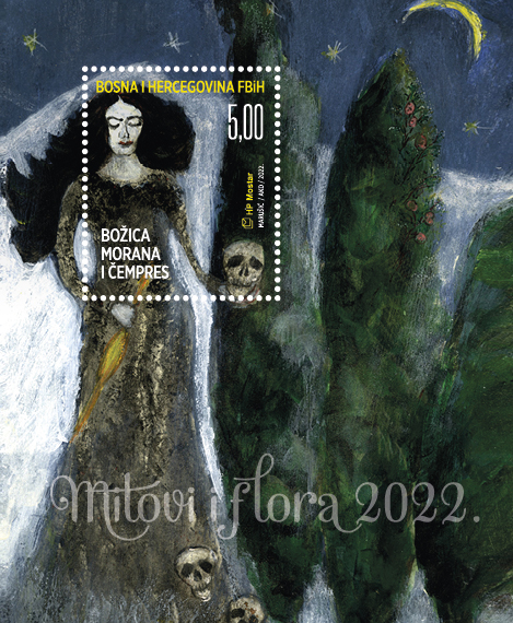 Hrvatska pošta (HP) Mostar tiskala je prigodnu poštansku marku„Mitovi i flora 2022.“ s motivom slavenske božice Morane i čempresa. Božica osvete i smrti Morana kći je Peruna, vrhovnog boga slavenskog panteona, a predstavlja božicu prirode. U početku je mlada djevojka i nevjesta, zatim postaje osvetnica i na kraju, kada dolazi zima, pretvara se u samu Smrt.
