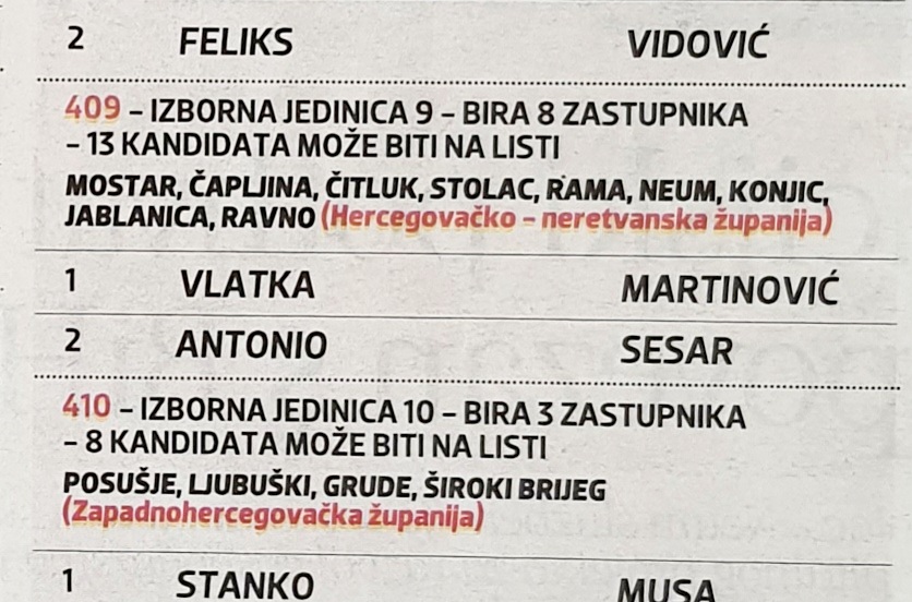 Večernji list bh objavio je sve nositelje i drugoplasirane kandidate HDZ BiH u utrci za tri razine vlasti u BiH.