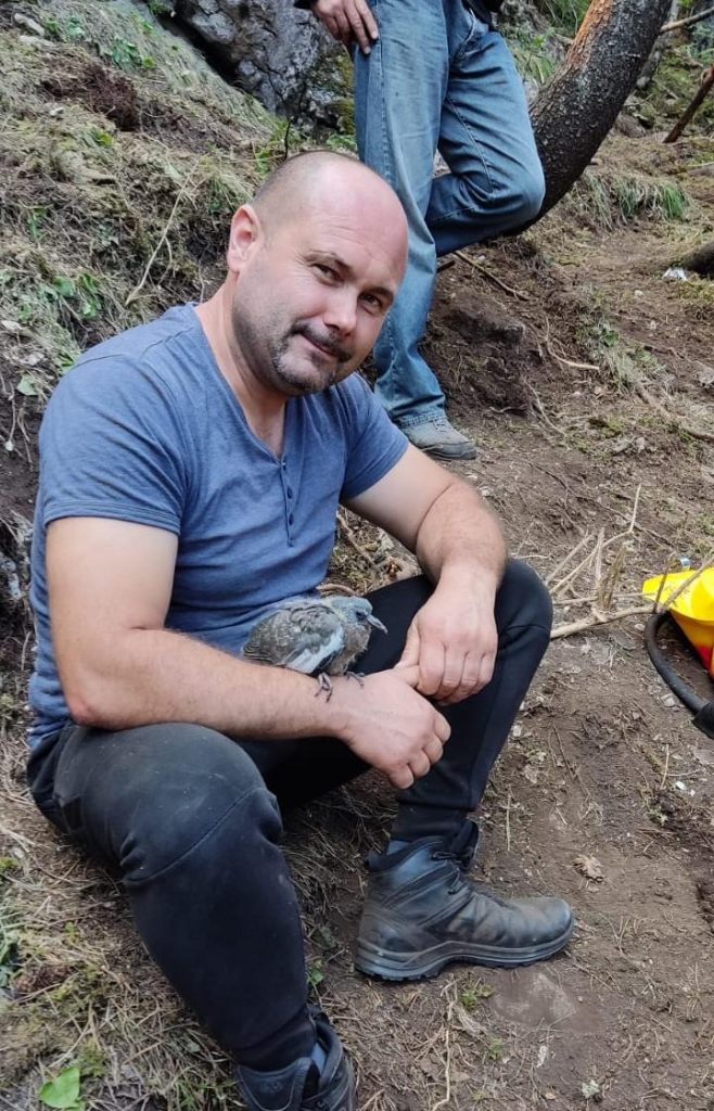 Portal Blidinje.net zaprimio ke fotografije s terena gdje jedna ptičica koja je preživjela požar “pozira” s pripadnicima DVD Rakitno nakon što su joj pružili pomoć i okrijepili vodom.