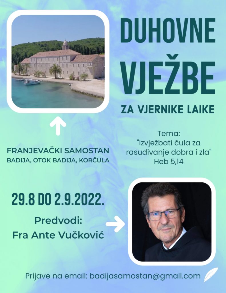 Od 29. kolovoza do 2. rujna u franjevačkom samostanu na otoku Badiji održat će se duhovne vježbe za vjernike laike, a predvodit će ih fra Ante Vučković.