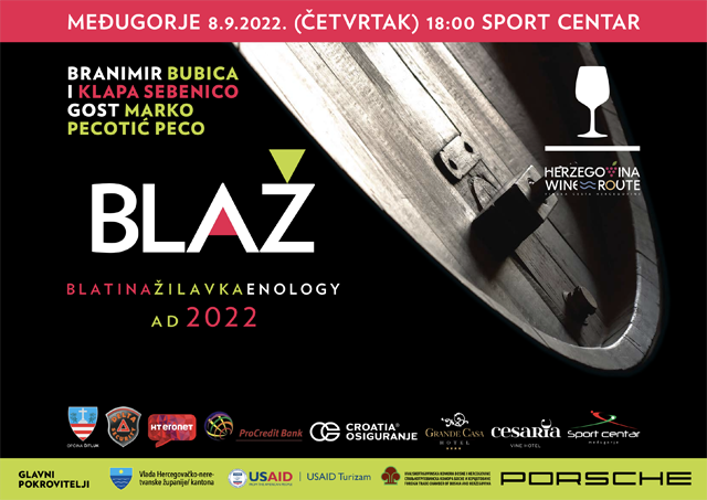 Enološki performans “BLAŽ Enology” održat će se 8. rujna 2022. godine u Sportskom centru Međugorje.