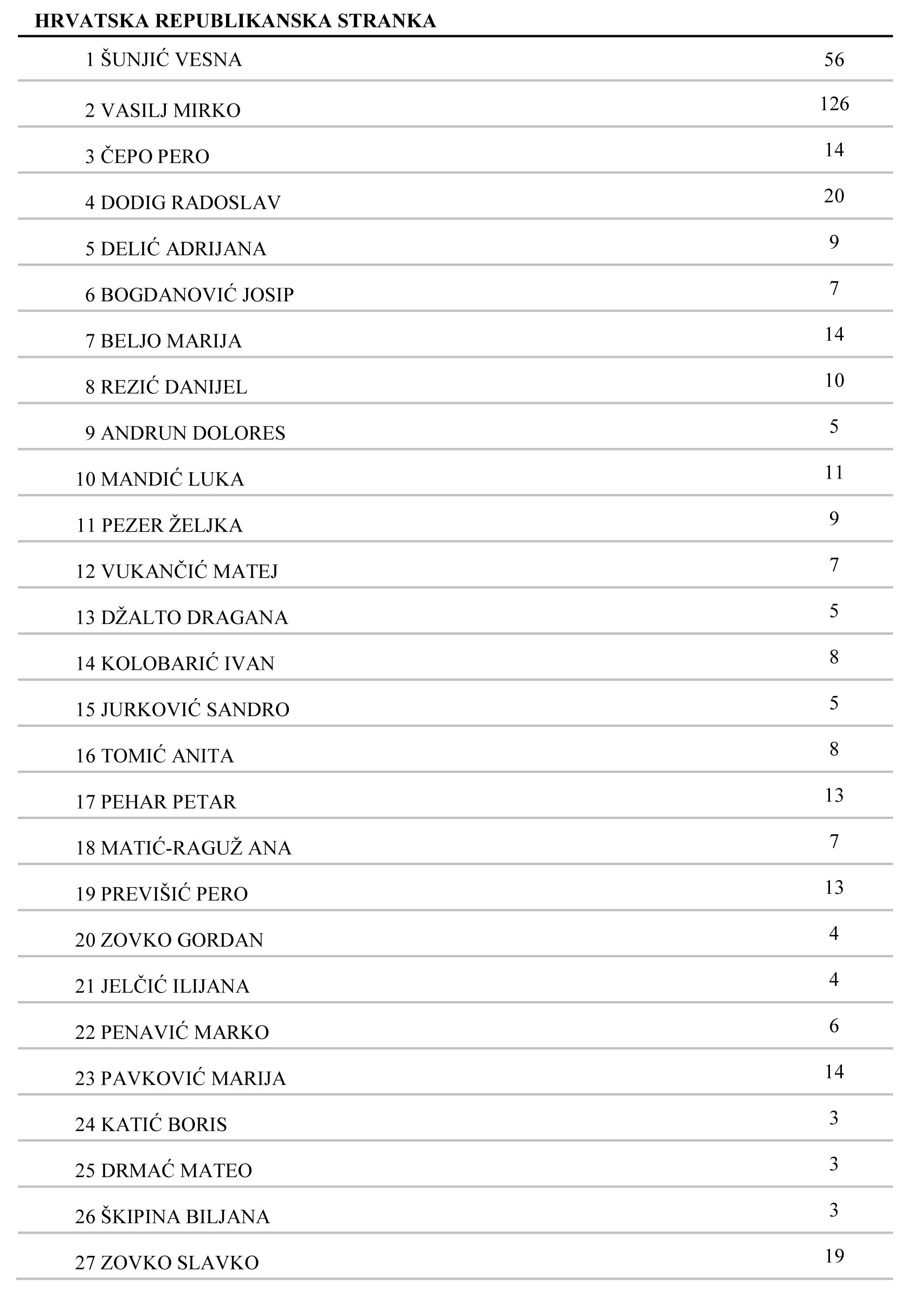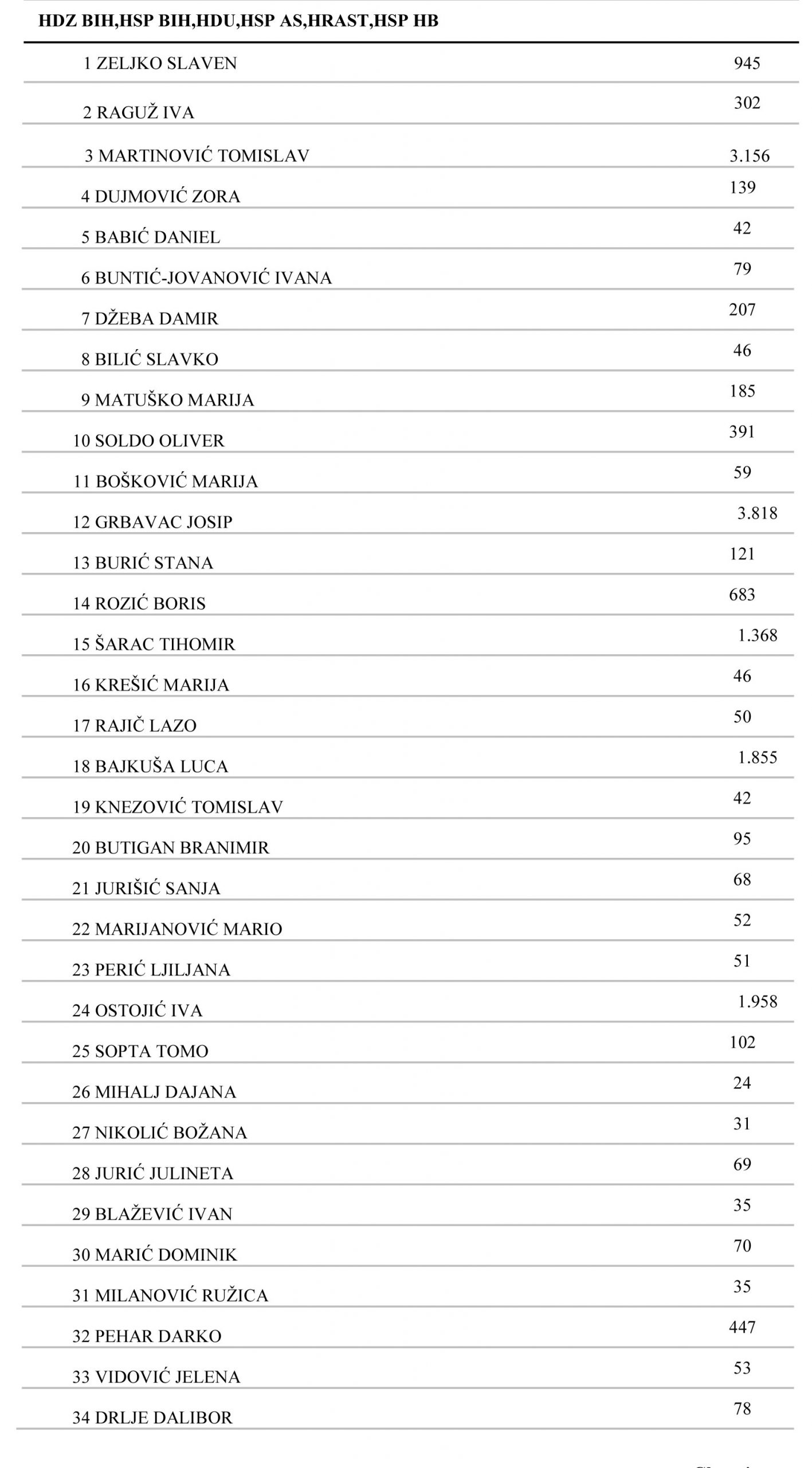 Budući da je HNŽ jedna izborna jedinica za izbor zastupnika u Skupštinu HNŽ, konačan redoslijed kandidata biti će poznat tek nakon što se obrade sva biračka mjesta u svim općinama i gradovima Hercegovčako-neretvanske županije.