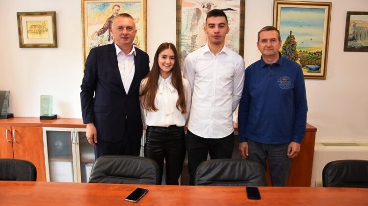 Načelnik Radišić na prijemu je čestitao Patricij i Juri na plasmanu na Svjetsko prvenstvo te sa zanimanjem saslušao njihove dojmove sa dosadašnjih natjecanja i planove za predstojeće velike sportske izazove.