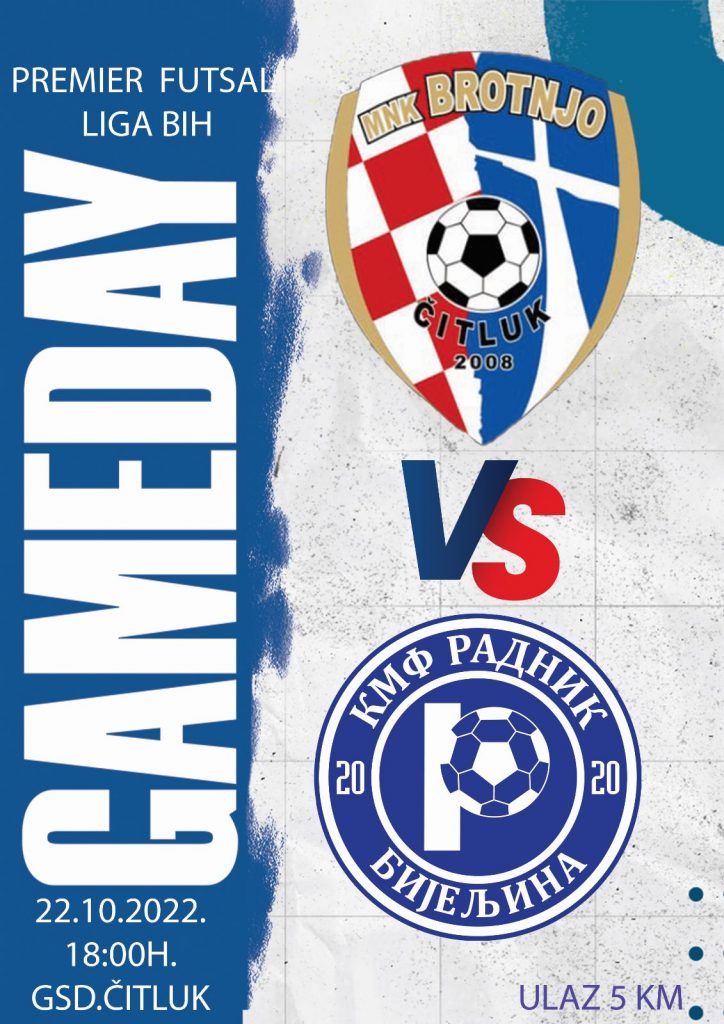 Večeras (subota 22.10.) očekuje nas utakmica 2. kola Premijer futsal lige Bosne i Hercegovine kada u našoj GSD u Čitluku dočekujemo odličnu momčad KMF Radnik Bijeljina.