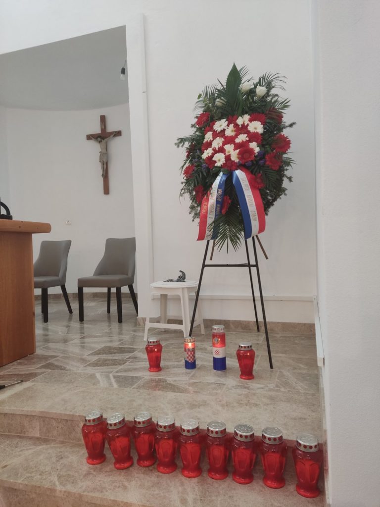 Nakon svjedočanstva slijedila je himna hrvatskog naroda “Lijepa naša”. Poslije himne uz oltar u crkvici sv. Josipa, zbog nevremena vani, ispred Izaslanstva Memorijalnog centra Groblja mira vijenac su položili gospodin Pero Kožul i gospodin Srećko Mikulić, zapaljene su svijeće za sve hrvatske žrtve stradale u Drugome svjetskom ratu i poraću, kao i za sve ostale pokojne.