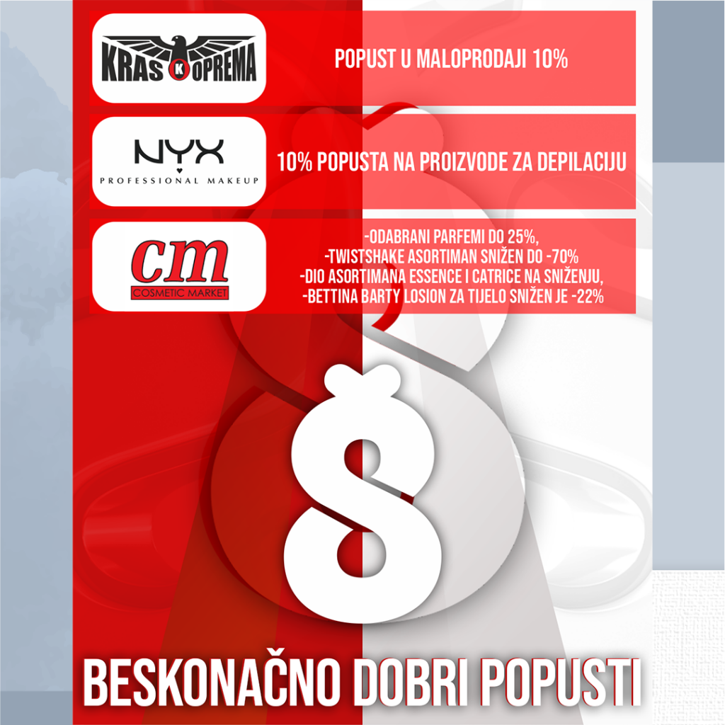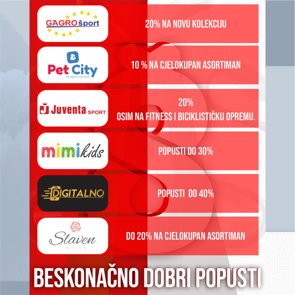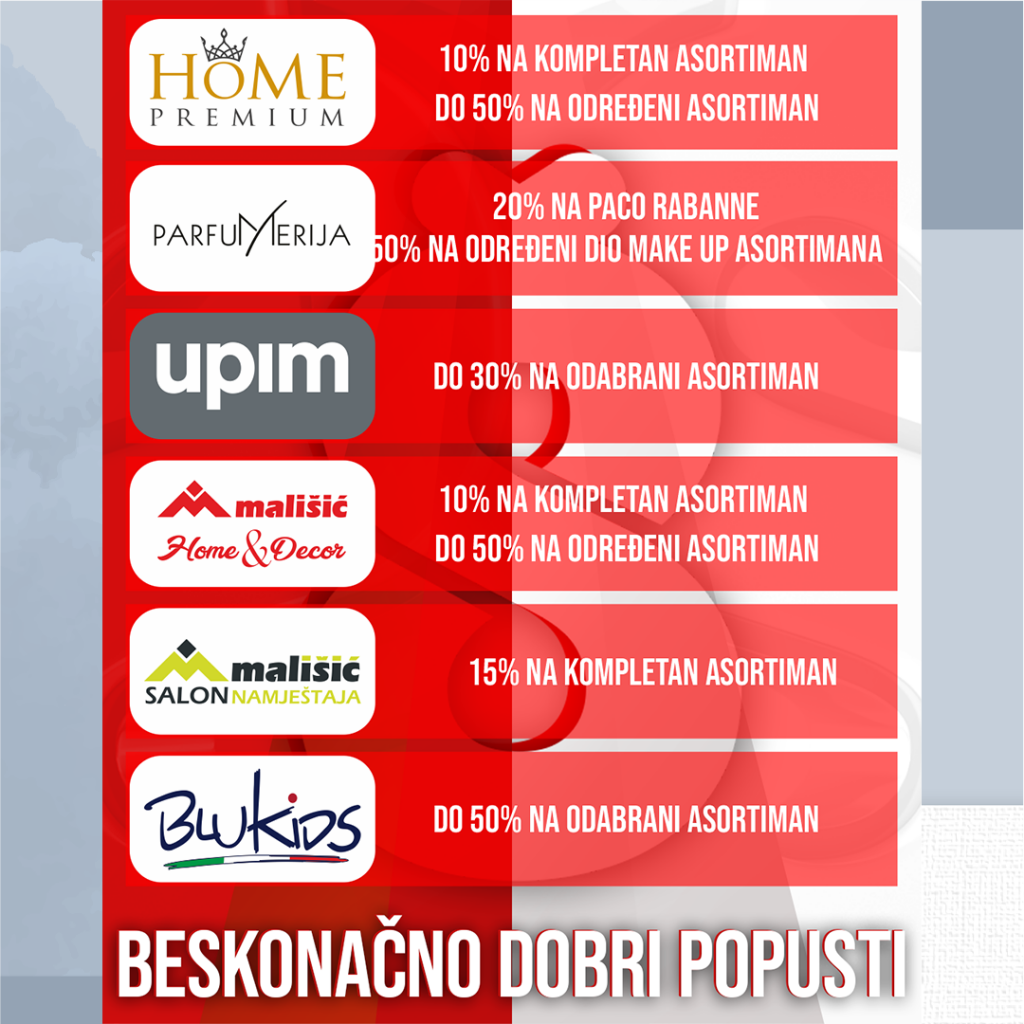 Cijenjeni kupci, i ovog utorka, 08.studenog ne propustite prigodu za odličan shopping uz akcijske popuste koje vam donosi još jedna Sretna Osmica u prodajnom centru Mališić Međugorje.
