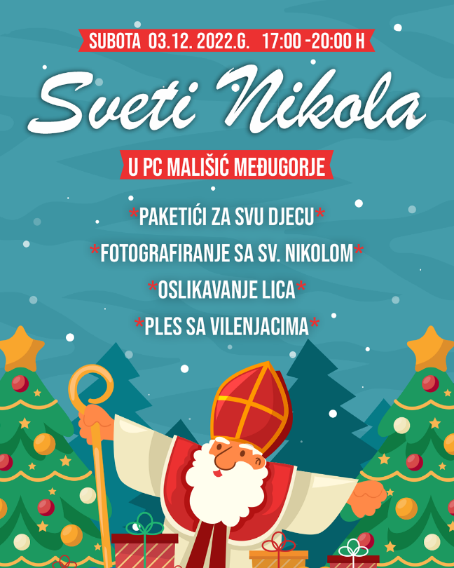 SVETI NIKOLA U PC MALIŠIĆ MEĐUGORJE ➡SUBOTA,03.12.2022.g./17:00 -20:00 h