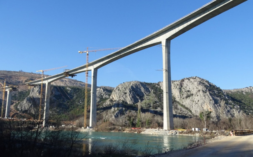 Na gradilištu mosta Počitelj, najimpozantnije građevine na Koridoru Vc, i ovih dana je radno. Za novogodišnje blagdane radnici su bili slobodni dva dana, jer, zbog davno probijenih rokova, vremena za predah nema.