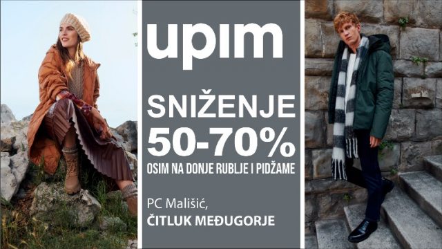 Cijenjeni kupci, ne propustite iskoristiti sezonsko sniženje 50 -70 % u trgovini UPIM u prodajnom centru Mališić Međugorje.