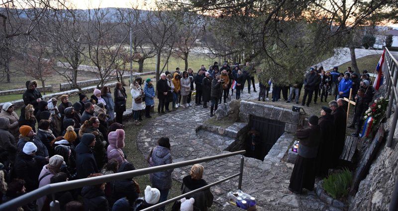 Na sv. misi je propovijedao fra Dario Galić, donedavni ž. vikar na Širokom Brijegu a sada u župi Drinovci. Izdvojimo sljedeće. »Dok se danas spominjemo nevino ubijenih članova naših obitelji, svećenika i naroda možemo se upitati zašto su se takve stvari dogodile, i zašto se čine i danas? Zašto su ljudi i danas spremni povjerovati u očite laži? Objašnjenje se nalazi u činjenici da otuđeni čovjek, prazni iskorijenjeni pojedinci očajnički traže priču koja će njihovim životima dati smjer i reći im što da rade. Tako pojedinac bez vjere u nadnaravno, bez tradicije i običaja postaje očajnički samotnjak koji se promeće u ponajboljeg sljedbenika totalitarne ideologije, toliko da mu postaje dragocjenija i od života samoga. To je u biti bila nova religija koja ima veliku potrebu ukloniti svaku drugu religiju, onu istinsku i transcendentnu. Takva zavodljivost u svojoj biti je vjera u lažnu nadu; tražiti spasenje tamo gdje ga nema, ali ga očajnički trebaš. Tako dolazimo do istine o komunističkoj i ateističkoj obmani koju je ponajbolje okarakterizirao i razotkrio Aleksandar Solženjicin u svojim velebnim djelima. On je ustvrdio da je srž krize koja je stvorena i koja je održavala tu ideologiju u svojoj biti duhovna, a ne politička i materijalna stvarnost. Takva ideologija je laž, gdje postanak i održanje toga lažnog sustava ovisi isključivo o strahu ljudi od suprotstavljanja tim lažima. … Možda netko smatra da je čuvanje kolektivnog sjećanja jednoga naroda na teške događaje iz povijesti u svojoj biti bez velikog smisla. Ali realnost stvari je nešto sasvim drugo. Ispravno poimani povijesni događaji pomažu nam razumjeti i ispravno živjeti u sadašnjosti. Mi smo danas na početku novog doba. U naše vrijeme ne provodi se klasični totalitarni način okupacije ljudskog društva i uma, kako je to slučaj u komunizmu, nego nešto što se naziva meki ili terapeutski totalitarizam. Mržnja prema protivnicima svoje utopijske ideologije u naše vrijeme zaodijeva se u pomaganje i iscjeljivanje drugih. Današnji meki totalitarni poredak u nastajanju zahtijeva prihvaćanje subjektivističkog i osobnog moralnog pogleda kao objektivni postulat cjelokupnom društvu. Odanost nema alternative nizu nazovi “prava”, progresivnih uvjerenja koja se često suprotstavljaju zdravom razumu i kršćanskoj vjeri. Poslušnost se nameće postupno, od dječjeg vrtića do javnog nastupa. Današnja elita provodi svoju agendu u velikoj suradnji sa svjetskim privatnim korporacijama koje preko tehnologije i moći novca nadziru i usmjeravaju živote ljudi, pa i država. To je sve zajedno zaodjenuto u masku velike filantropije i dobrote, a demonizira se svaka logična primjedba proturječja. … Nama je upućen poziv da i danas čuvamo poglavito svoj čvrsti odnos s Kristom. Izazova je puno i ne ćemo moći sami kroz život, a tko vjeruje nikada nije sam. Nama treba netko iznad ovoga materijalnog svijeta, netko jači i veći od našeg ranjenog srca i razuma, netko mnogo snažniji i umniji od nas samih. On koji je svjetlo od svjetla pobijedio je laž, u jednom gradu, na jednoj gori zvanoj Golgota. Taj događaj božanske žrtve za nas se uprisutnjuje u svakoj sv. misi, pa i večeras. On je naša snaga i naš put. On je prinio slobodno sam sebe i pozvao nas da ga slijedimo bez straha. Njegova savršena radosna riječ raskrinkava sve obmane i zloduhovske laži kroz sva stoljeća.«