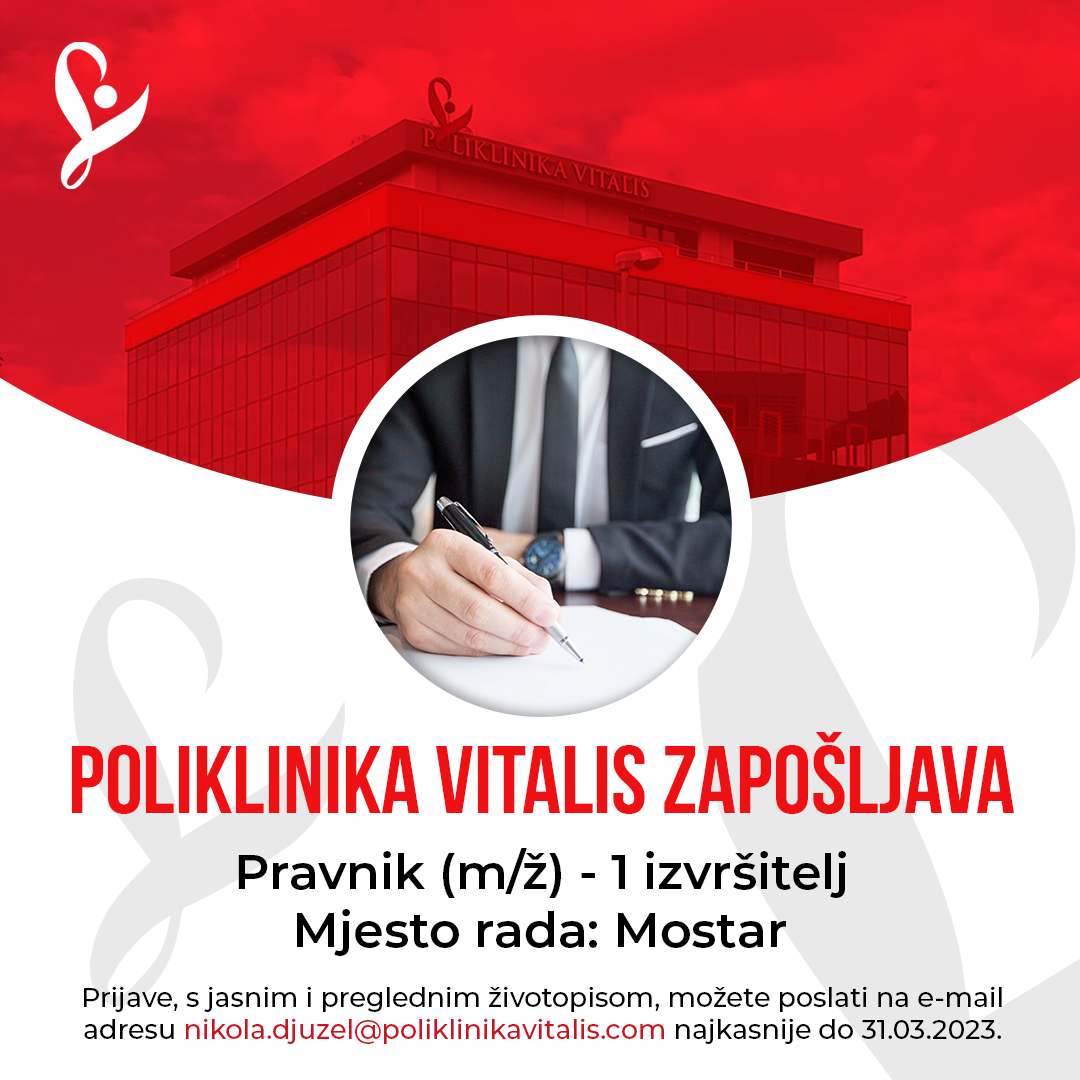 POLIKLINIKA VITALIS ZAPOŠLJAVA – Pravnik (m/ž)