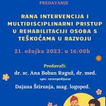U utorak predavanje na temu “Rana intervencija i multidisciplinarni pristup u rehabilitaciji osoba s teškoćama u razvoju”