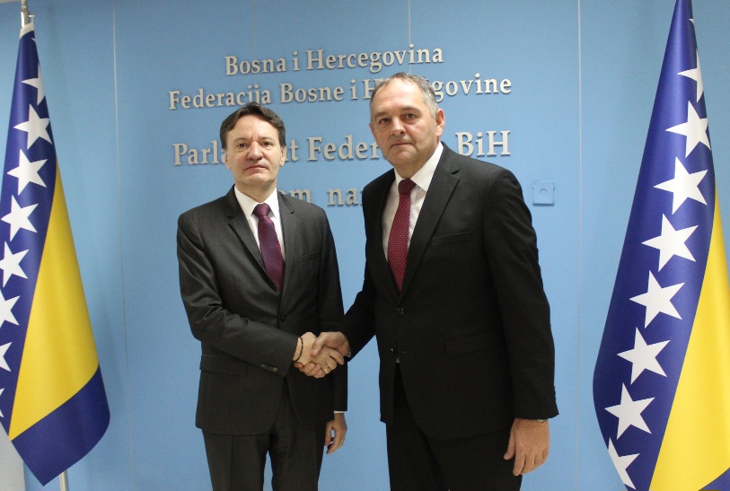 Predsjedatelj Doma naroda Parlamenta Federacije BiH Tomislav Martinović primio je danas u nastupni posjet veleposlanika Rumunjske u BiH Antona Pacuretua.Razgovaralo se o stanju u Federaciji BiH i BiH s posebnim naglaskom na proces završetka formiranja vlasti u Federaciji BiH.