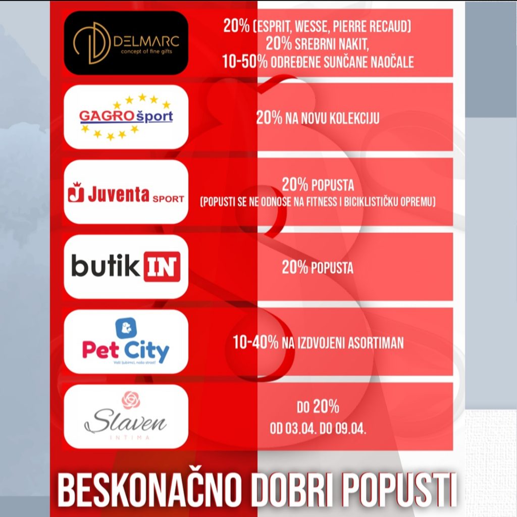 Ova Sretna Osmica donosi vam sljedeće popuste: