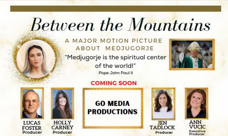 U izradi je veliki hollywoodski film o Međugorju, radnog naslova „Between the Mountains“, (u prijevodu „Između planina“, što bi bilo pojašnjenje samog imena „Međugorje“, mjesta gdje se prije 42 godine ukazala Nebeska Majka šestero vidjelaca), s poznatim hollywoodskim producentom Lucasom Fosterom, čovjekom koji je producirao poznate filmove poput Man on Fire i Ford vs Ferrari doznaje medjugorje-info.com