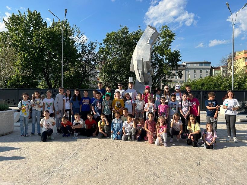 Ispred muzeja je trg u čijem središtu se nalazi skluptura Ruke autora akademskog kipara Josipa Ivešića.