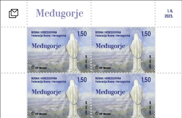 Hrvatska pošta (HP) Mostar tiskala je prigodnu poštansku marku „Međugorje 2023.“ s motivom Kraljice Mir.