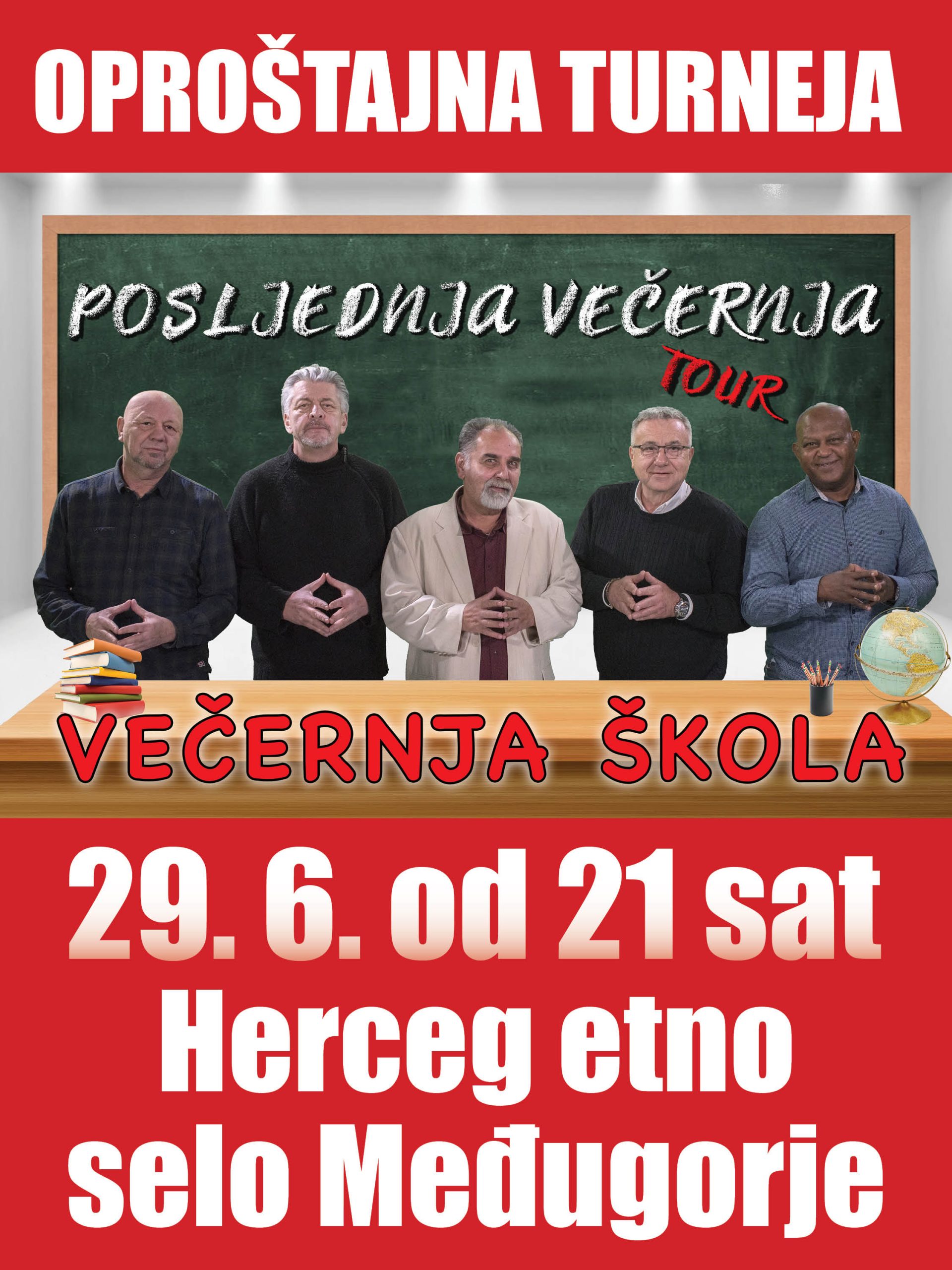 Autor „Večernje škole“ Željko Pervan već je najavio da je ova turneja neponovljiva i da nema namjeru nastavljati s novim nastavcima legendarne „Večernje škole“, što aktualnu turneju čini još ekskluzivnijom prilikom za uživanje u vrhunskoj Pervanovoj satiri.