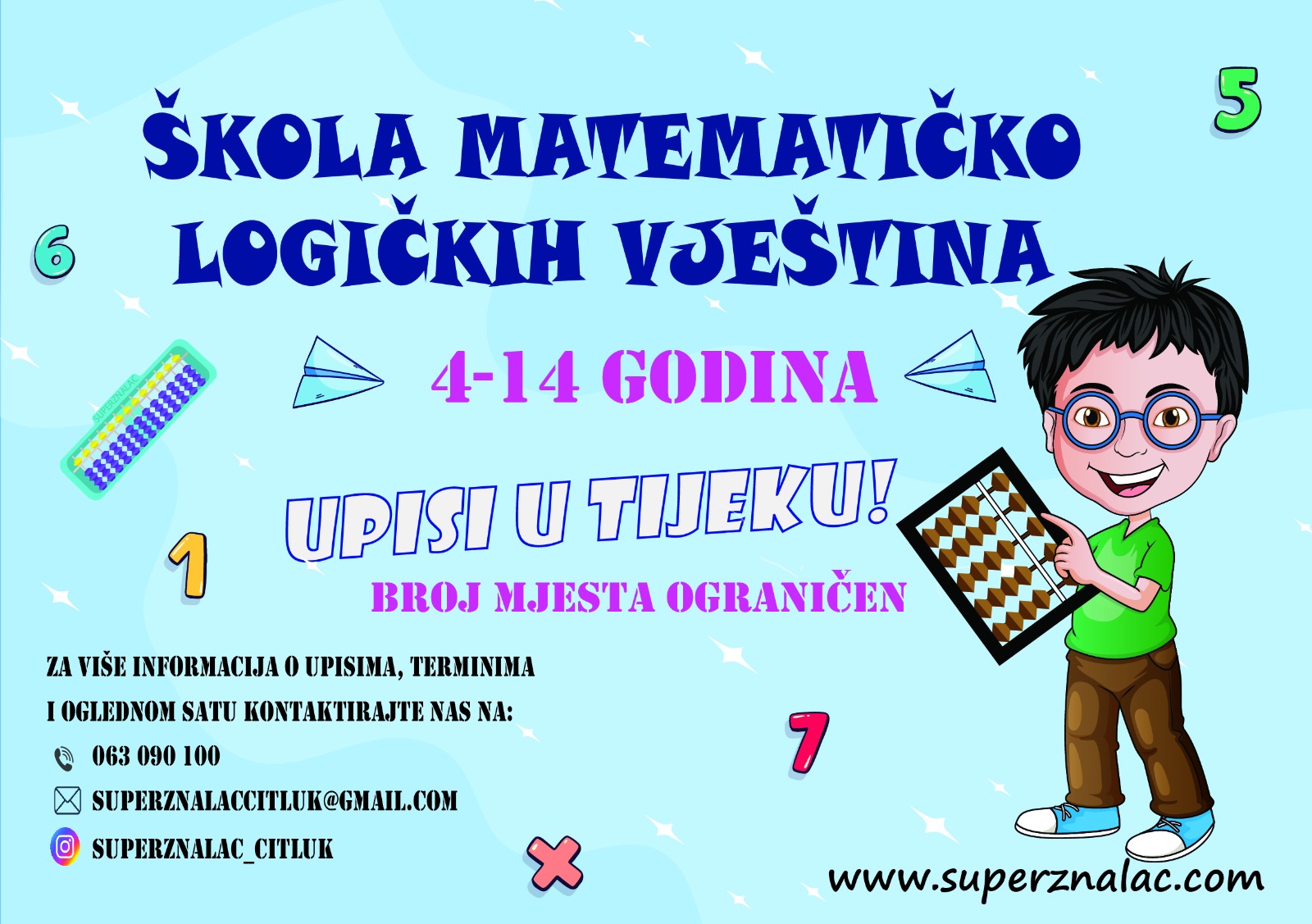 Superznalac je škola matematičko – logičkih vještina za svu djecu koja žele učiti na kreativan, zabavan i zanimljiv način.