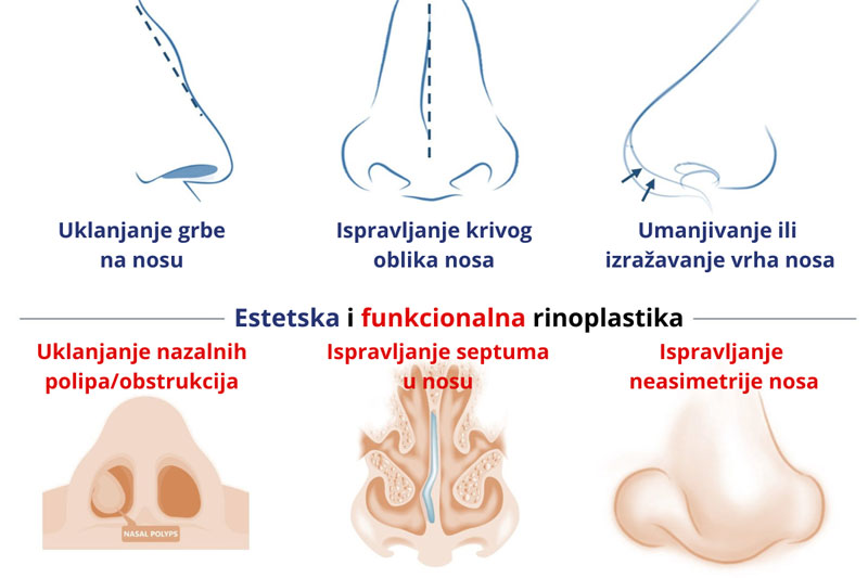Šire gledano, rinoplastika se može koristiti za opisivanje ne samo kozmetičkih postupaka osmišljenih da utječu na izgled nosa, već i medicinskih postupaka za poboljšanje funkcije nosa.Funkcionalna rinoplastika je operacija koja uključuje modificiranje vanjskih nosnih struktura kako bi se poboljšalo disanje kroz nos, što može imati blagotvoran učinak na pacijentovo cjelokupno zdravlje. Trauma i/ili varijacije u prirodnoj anatomiji nosa mogu dovesti do anatomskih uzroka začepljenja nosa. Ove anatomske opstrukcije često se nalaze u kombinaciji s temeljnim uzrocima upale nosne sluznice, kao što su kronične alergije i/ili sinuitis.