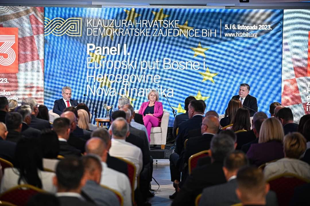 Na panelu Europski put Bosne i Hercegovine – Nova dinamika, govorili su šef izaslanstva Europske unije u BiH i specijalni predstavnik Europske unije u BiH veleposlanik Johann Sattler, zamjenica predsjednika HDZ-a BiH i predsjedateljica Vijeća ministara BiH Borjana Krišto i međunarodni tajnik i zamjenik ministra vanjskih poslova BiH Josip Brkić.