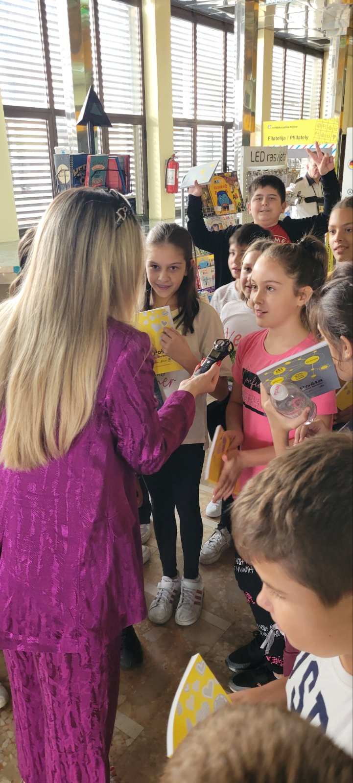 Prilikom posjete poštanskom uredu Hrvatske pošte Mostar djeca su se upoznala s osnovama poštanskog prometa, slanja pisama, razglednica, paketa kao i ostalih mnogobrojnih usluga. Voditeljica odjela filatelije Željka Šaravanja upoznala je djecu sa procesom izdavanja maraka te su tom prilikom znatiželjna djeca imala mogućnost postaviti brojna pitanja o svim procedurama unutar pošte.