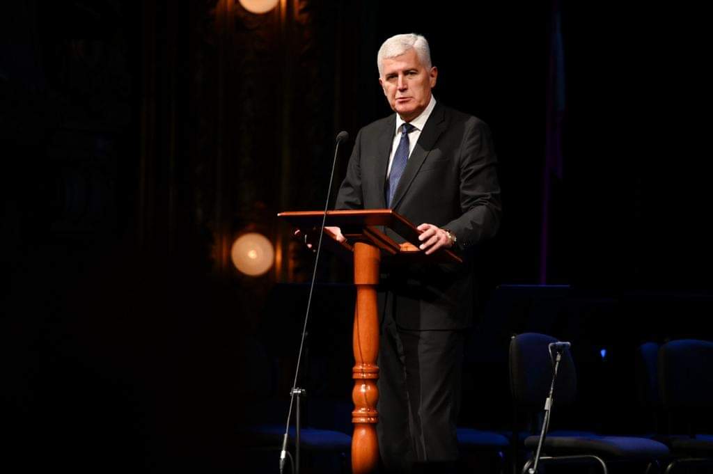 Izaslanstvo HDZ-a BiH i Hrvatskog narodnog sabora BiH na svečanoj akademiji predvodio je predsjednik dr. Dragan Čović, koji se i obratio nazočnima.