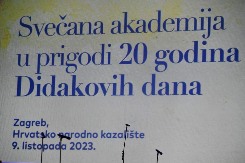 Svečana akademija povodom 20. obljetnice Didakovih dana održala se u Hrvatskom narodnom kazalištu u Zagrebu pod pokroviteljstvom Hrvatskog sabora, a supokrovitelj je Hrvatski narodni sabor Bosne i Hercegovine.