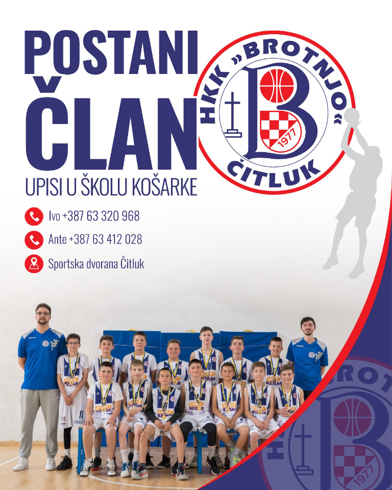 Škola košarke HKK Brotnjo vrši upis novih članova za dječake od 6 do 14 godina!