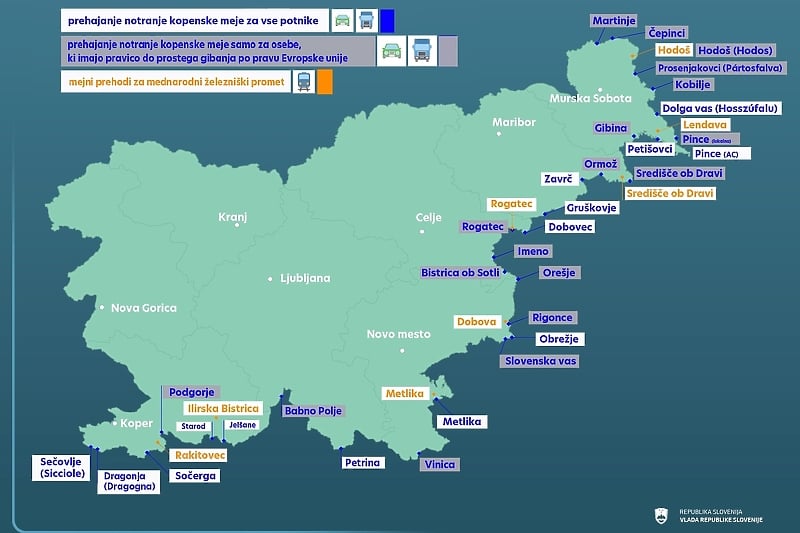 Slovensko ministarstvo unutrašnjih poslova je izdalo naredbu kojom se utvrđuju granični prijelazi s Republikom Hrvatskom i Republikom Mađarskom na kojima je dozvoljen prelazak granice za vrijeme privremenog ponovnog uvođenja graničnih kontrola.