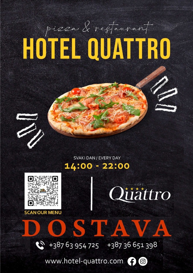 Zbog velike zainteresiranosti i puno upita koje smo dobili u zadnje vrijeme restoran u sklopu hotela Quattro uvodi dostavu na području Međugorja.