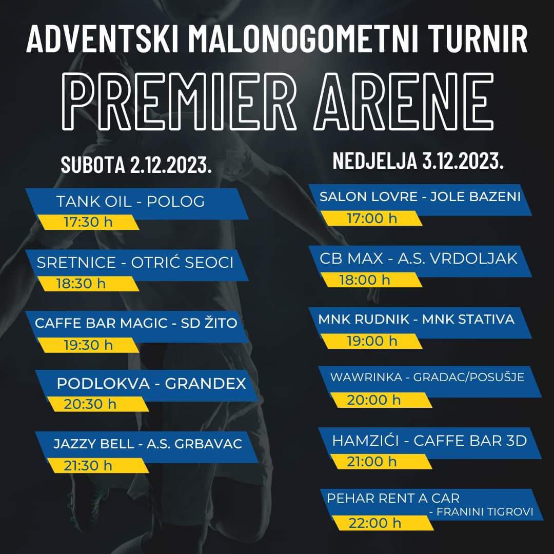 Vikendi između 2.12. i 23.12 su rezervirani za za sve entuzijastične ekipe koje žele pokazati svoje sportsko umijeće i osvojiti titulu prvaka Adventskog malonogometnog turnira.