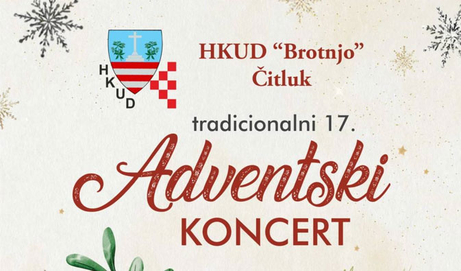 Tradicionalni 17. po redu Adventski koncert HKUD-a Brotnjo – Čitluk održat će se u utorak, 19. prosinca s početkom u 20 sati u dvorani sv. Ivana Pavla II. (žuta dvorana) u Međugorju.